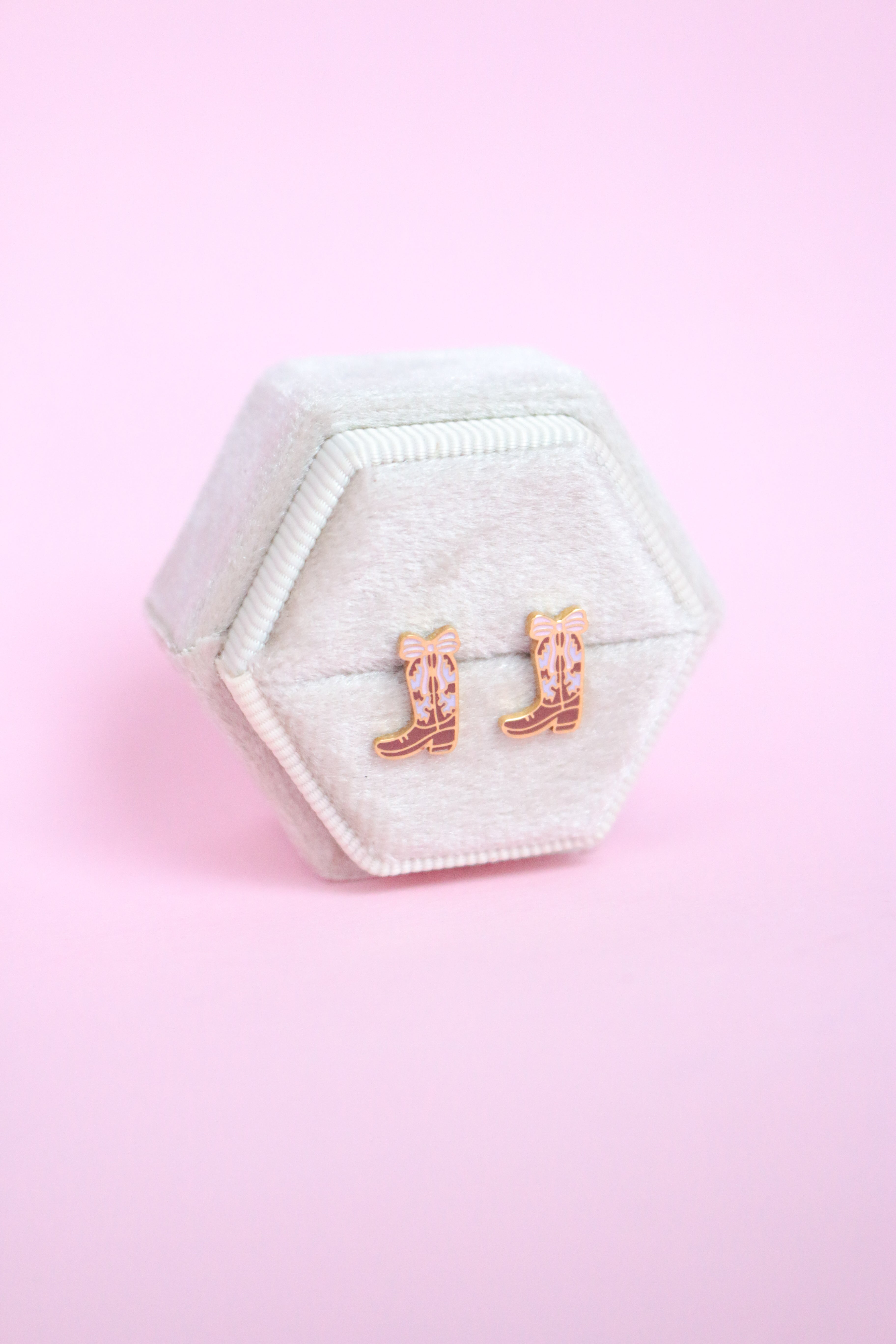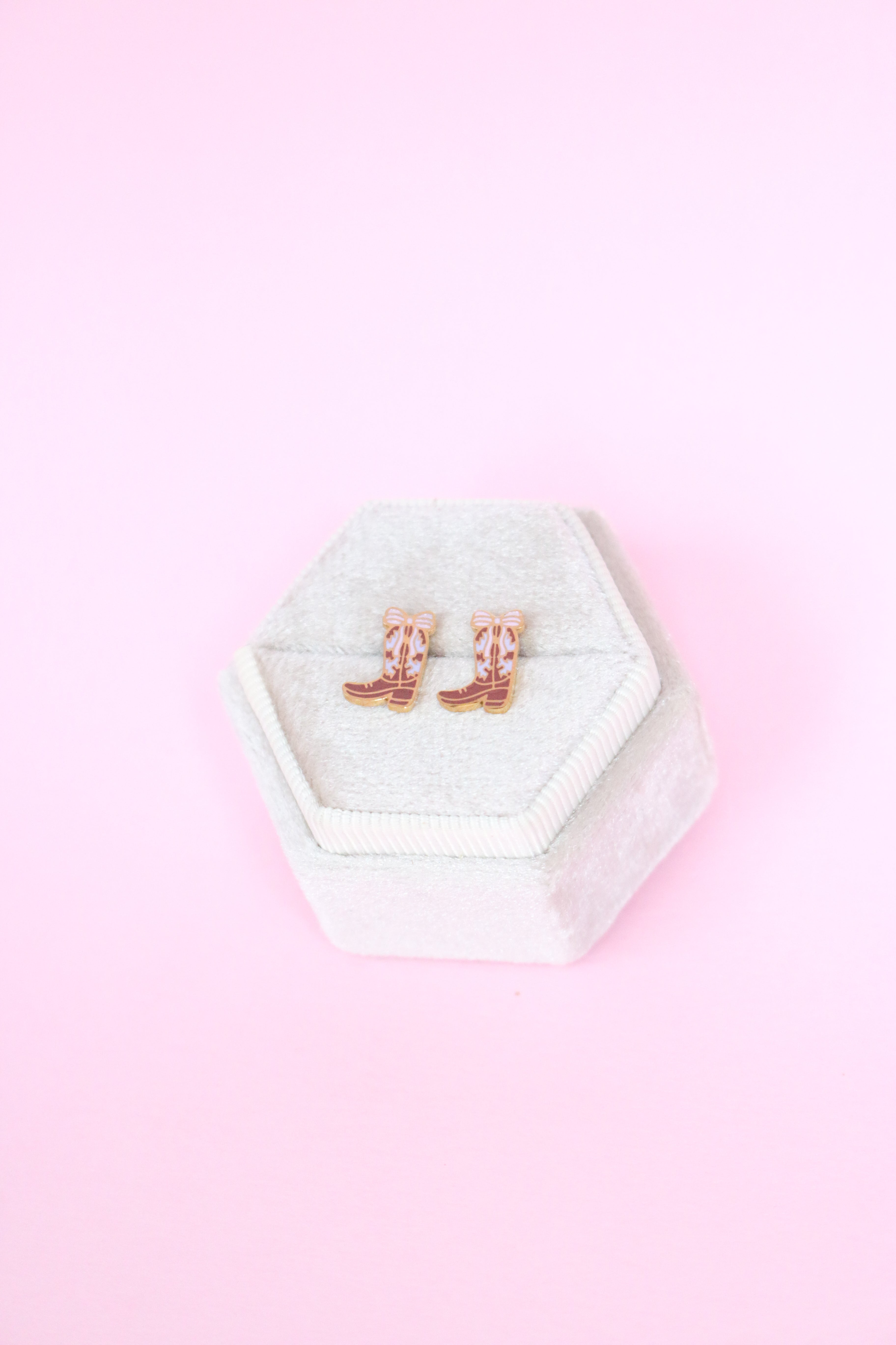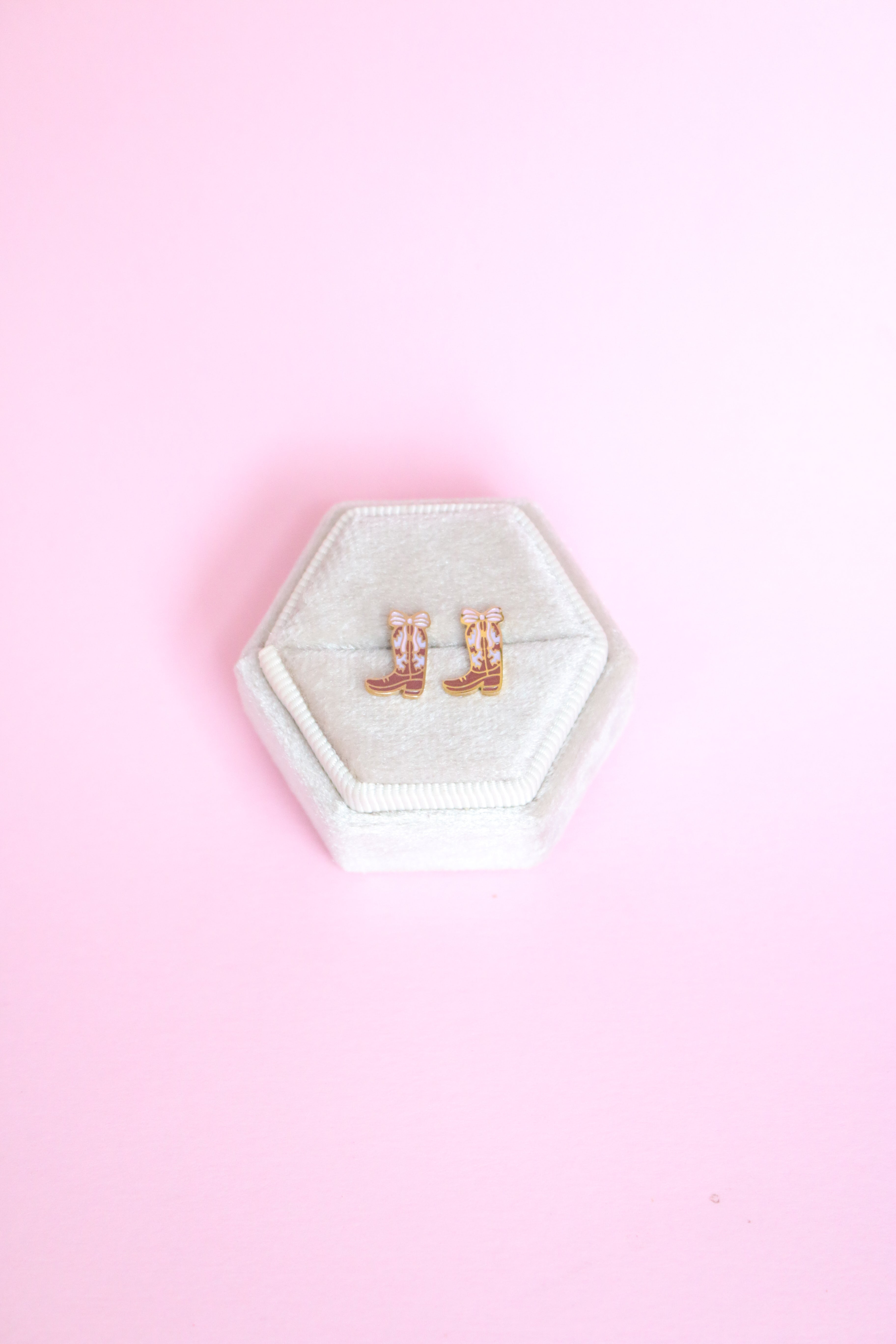Long Live Cowgirls! These cute Cow Girl Boot earrings are 18k gold plating and made from hypoallergenic materials, making them suitable for even the most sensitive ears. As part of our Western collection these cute and dainty earrings are complemented by a flat back closure ensuring a comfortable and secure fit. Add this cute custom design to your stack now.