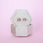 Aren't these the cutest little earrings you've ever seen!? Get ready for summer with these cute classic sneaker studs that are 14k gold plated and made from hypoallergenic materials. As part of our Americana collection these cute and dainty studs feature a pair of red white and blue striped and stared sneakers. Add this cute custom design to your stack now.