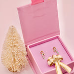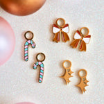 These cute candy-cane charms are 18k gold plated and made from hypoallergenic materials, making them suitable for even the most sensitive ears. They feature light pink and blue striped details. Pair these cute charms with our gold huggies. Add this cute custom design to your collection now!