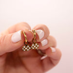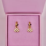 These gold and white checkered pumpkin charms are 18k gold plated for quality you can trust, water resistant and tarnish free! Made to pair with our gold huggies, these dangling charms are the cutest accessory. Wear these in the tub, at the pool or to work out! These were made to live in. Perfect for girls and women of all ages. Upgrade your accessory game with these stylish and functional earrings, perfect for all-day wear.