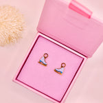 These darling Ice Skate charms are 18k gold plated and made from hypoallergenic materials, making them suitable for even the most sensitive ears. They feature a cute design for the perfect Holiday addition. Pair these with our gold huggies. Add this cute custom design to your collection now!