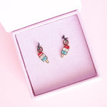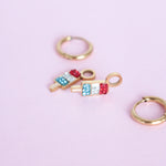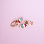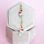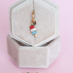 Who loves a nostalgic summer? These cute charms are a must have this summer and come 14k gold plated and made from hypoallergenic materials. As part of our Americana collection these cute and dainty charms feature a pair of red white and blue "diamond" studded popsicles with a little fun sparkle your little or Mom will love! Add this cute custom design to your stack now.