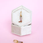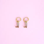 Long Live Cowgirls! These cute Cow Girl Boot charms are 14k gold plated and made from hypoallergenic materials, making them suitable for even the most sensitive ears. As part of our Western collection these cute and dainty charms pair perfectly with our gold huggies. Add this cute custom design to your stack now.