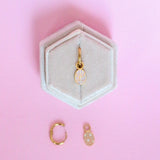 These darling mis-matched Easter Egg charms are 18k gold plating and made from hypoallergenic materials, making them suitable for even the most sensitive ears. As part of our Easter collection these cute and dainty charms are the funnest accessory! One earring includes a cute pink and white stripe design adorned with a cute bow. The other egg features a soft peachy pink with cute flowers and polka dots. Add this cute custom design to your stack now.