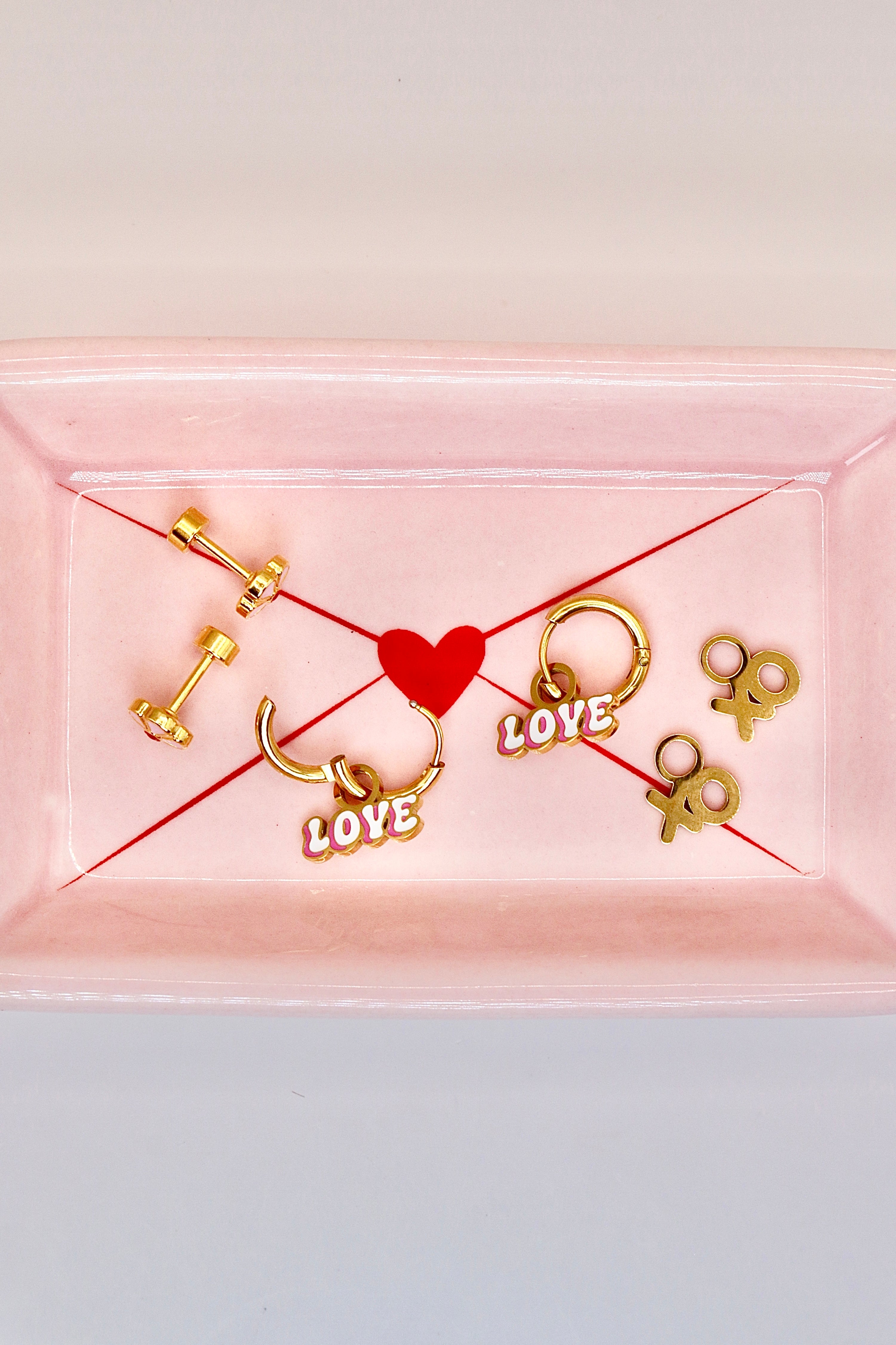 These cute LOVE charms in cute white bubble letters are 18k gold plating and made from hypoallergenic materials, making them suitable for even the most sensitive ears. Perfect for the season of love, add this cute custom design to your stack now.
