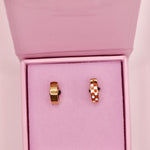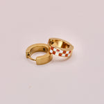 These orange and white checkered earrings are 18k gold plated for quality you can trust, water resistant and tarnish free! Where these in the tub, at the pool or to work out! These were made to live in. Perfect for girls and women of all ages. Upgrade your accessory game with these stylish and functional earrings, perfect for all-day wear.