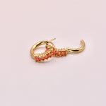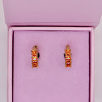 These orange gen studded hoop earrings are 18k gold plated for quality you can trust, water resistant and tarnish free! Where these in the tub, at the pool or to work out! These were made to live in. Perfect for girls and women of all ages. Upgrade your accessory game with these stylish and functional earrings, perfect for all-day wear.