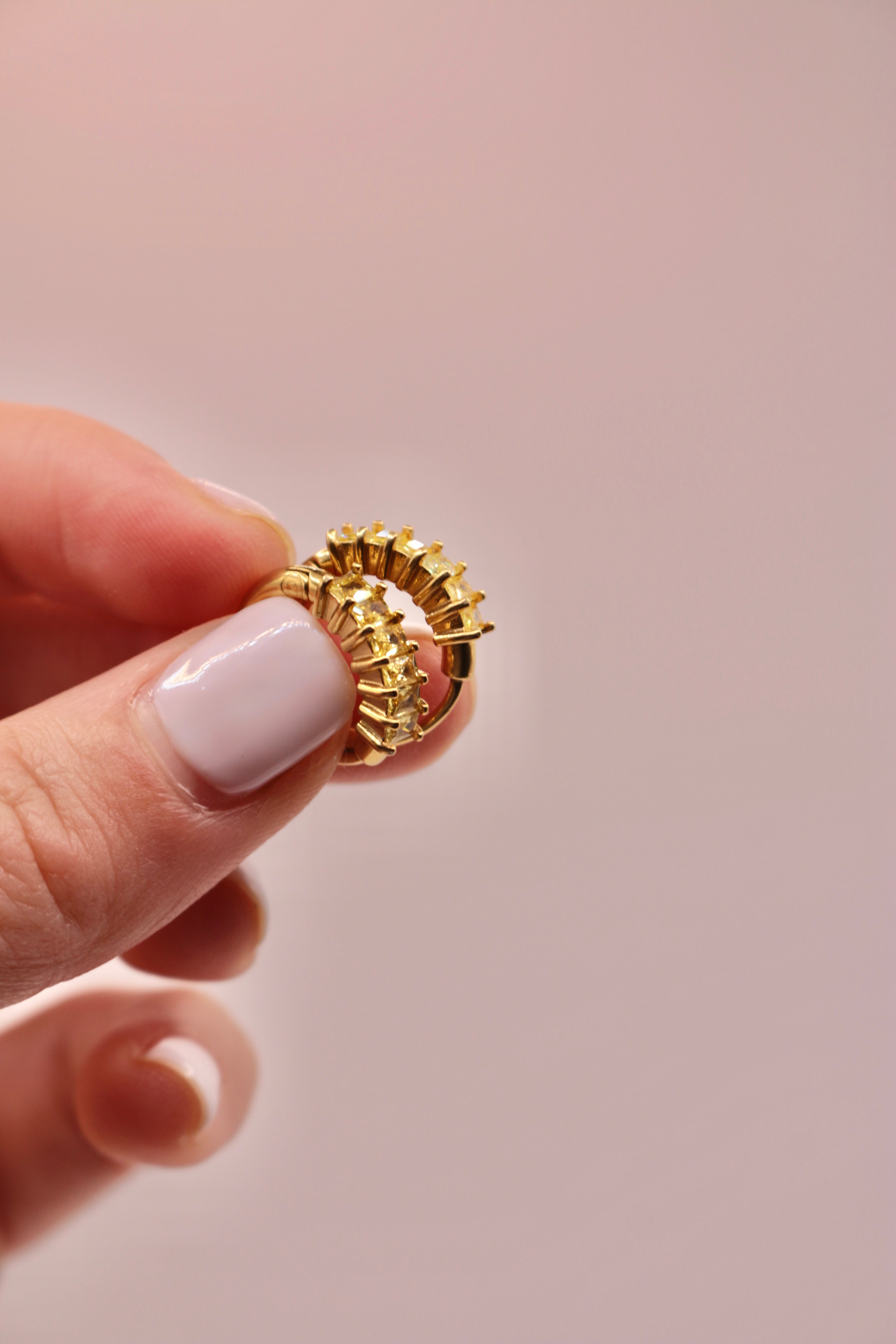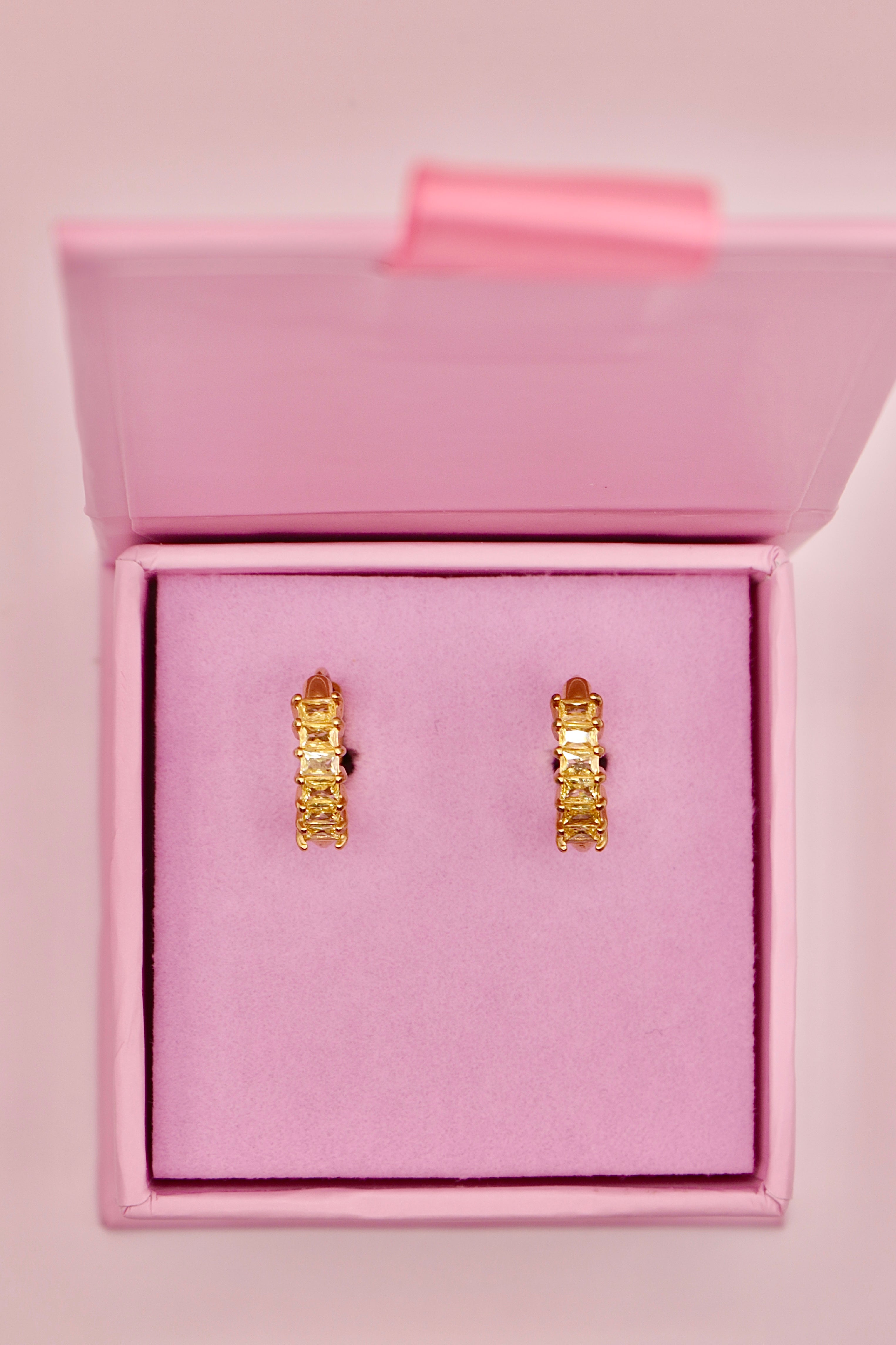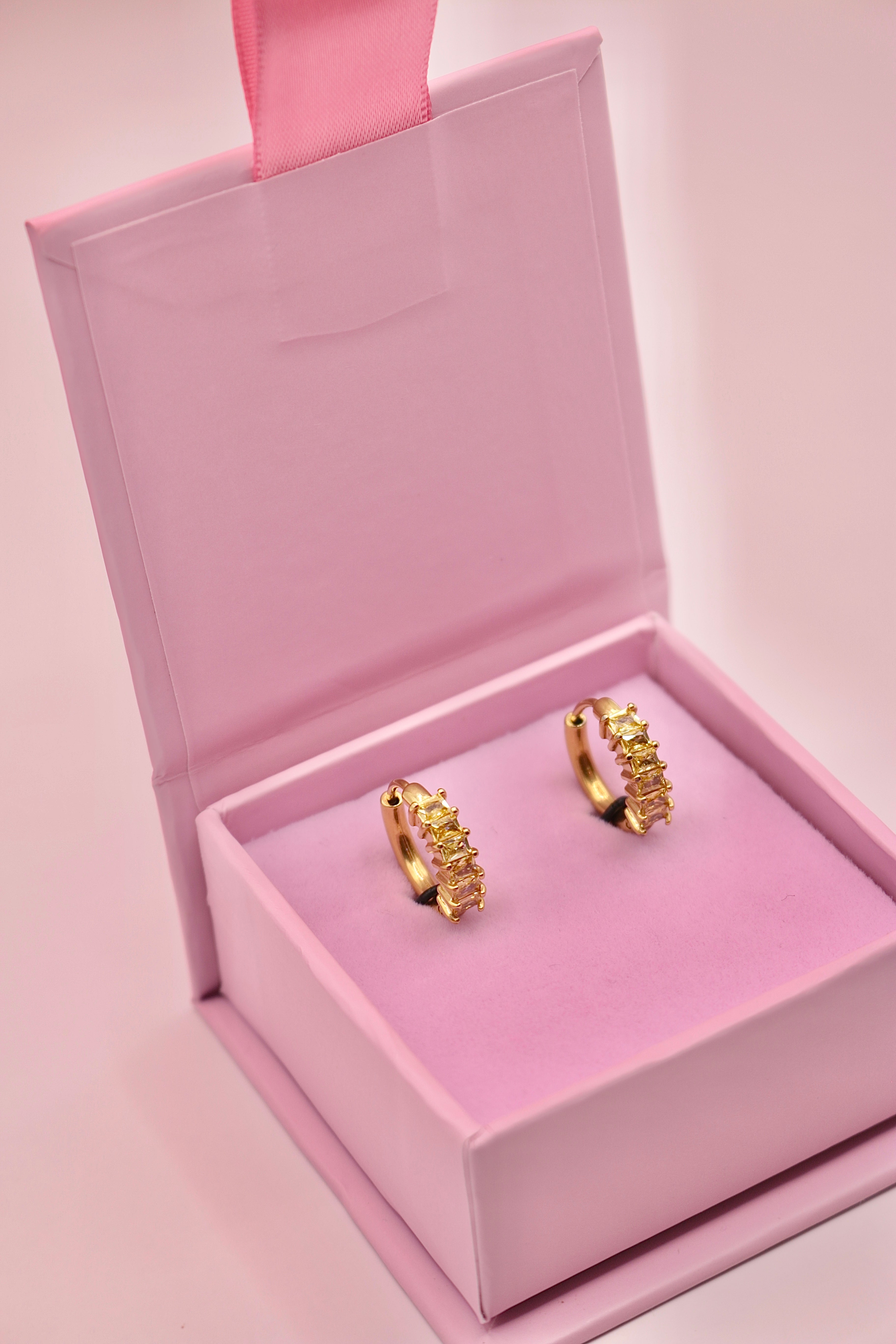 These yellow gem studded hoop earrings are 18k gold plated for quality you can trust, water resistant and tarnish free! Where these in the tub, at the pool or to work out! These were made to live in. Perfect for girls and women of all ages. Upgrade your accessory game with these stylish and functional earrings, perfect for all-day wear.
