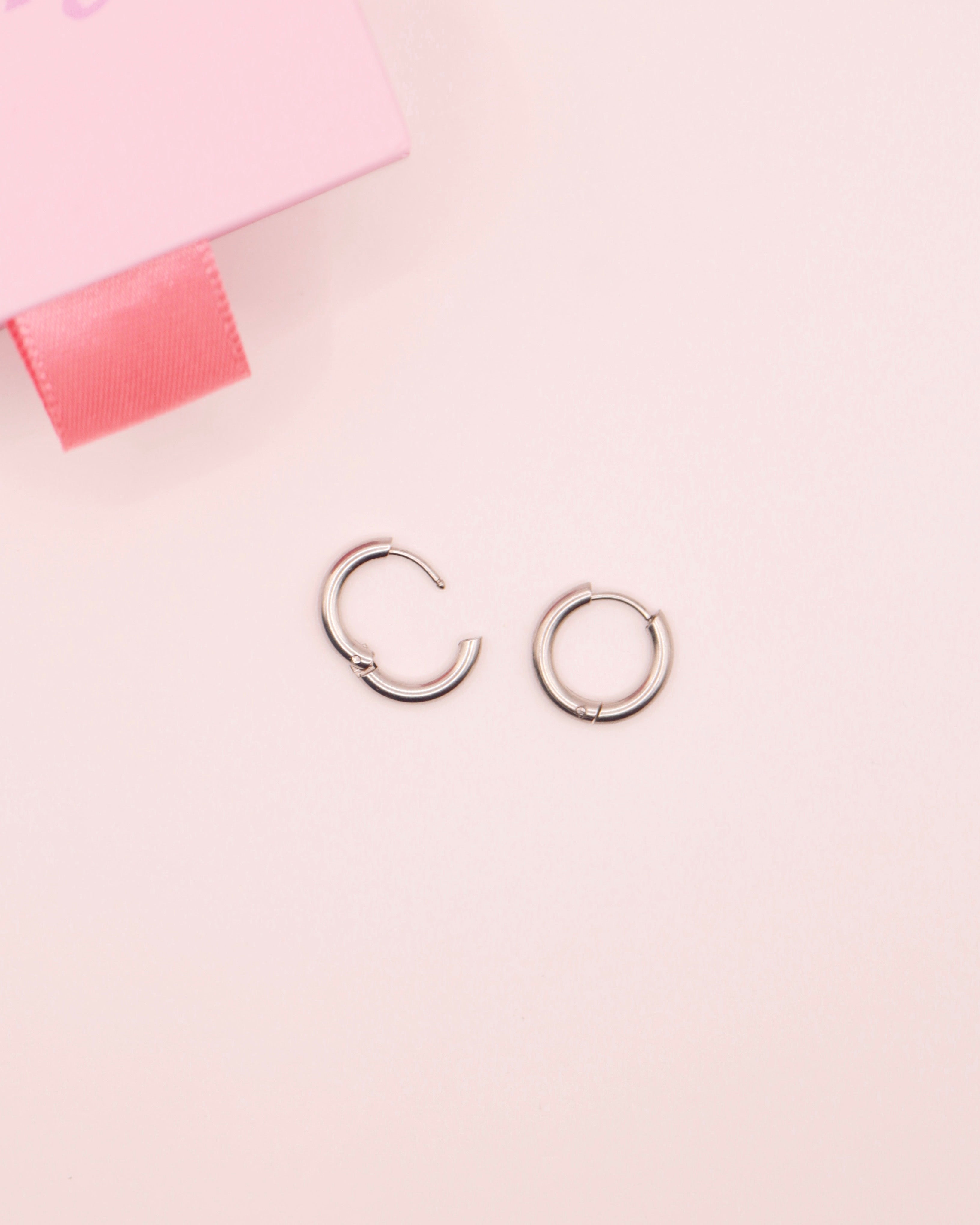 These silver hoop earrings are made from surgical grade stainless steel for guaranteed irritation resistance. They are perfect for girls and women alike. Add this basic and find all our fun charms to add to them! Upgrade your accessory game with these stylish and functional earrings, perfect for all-day wear.