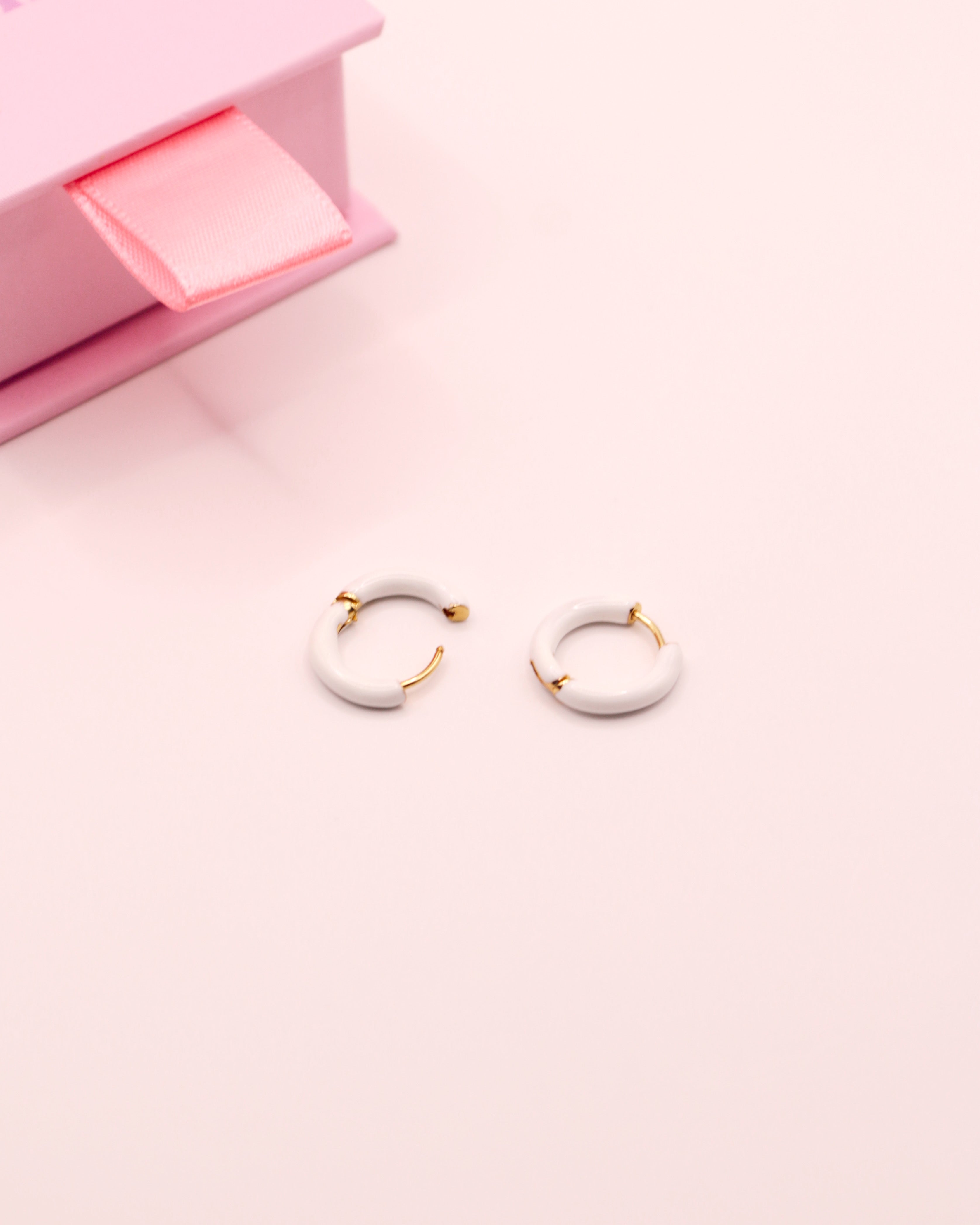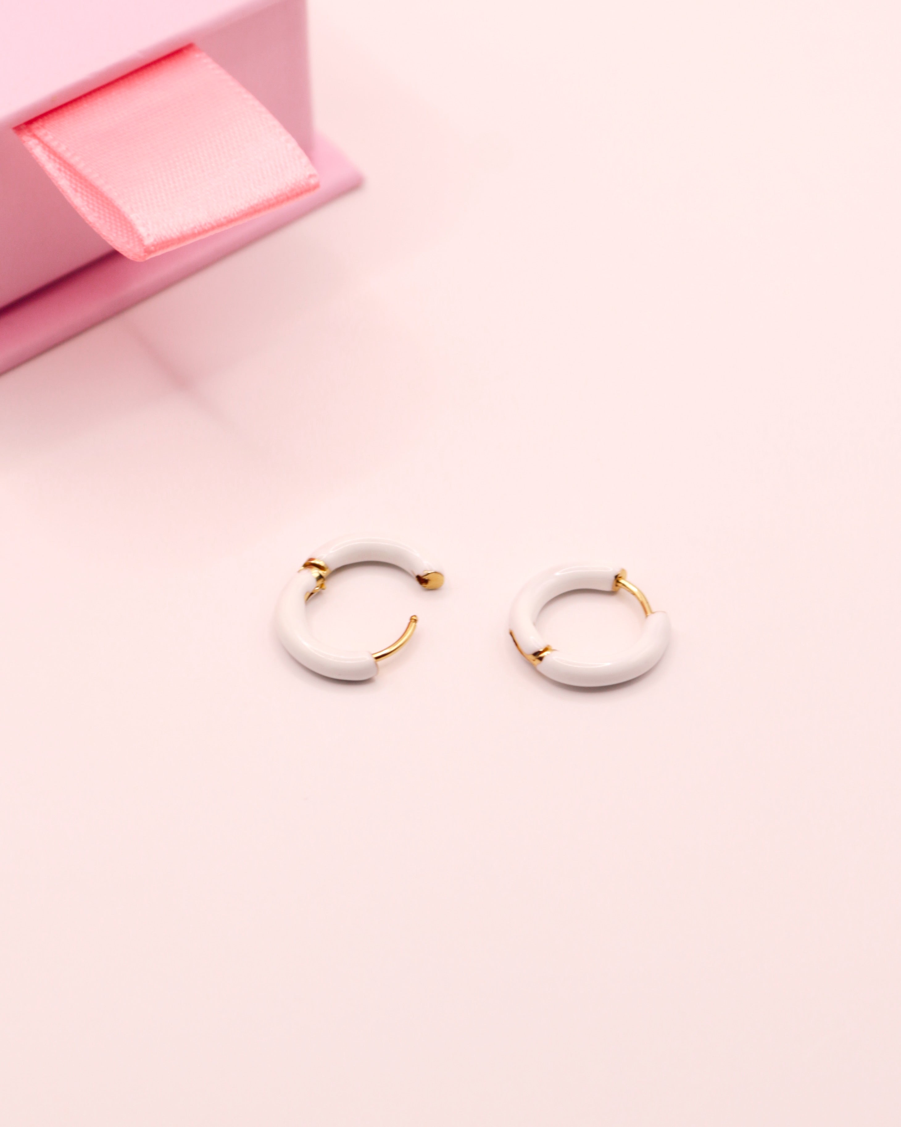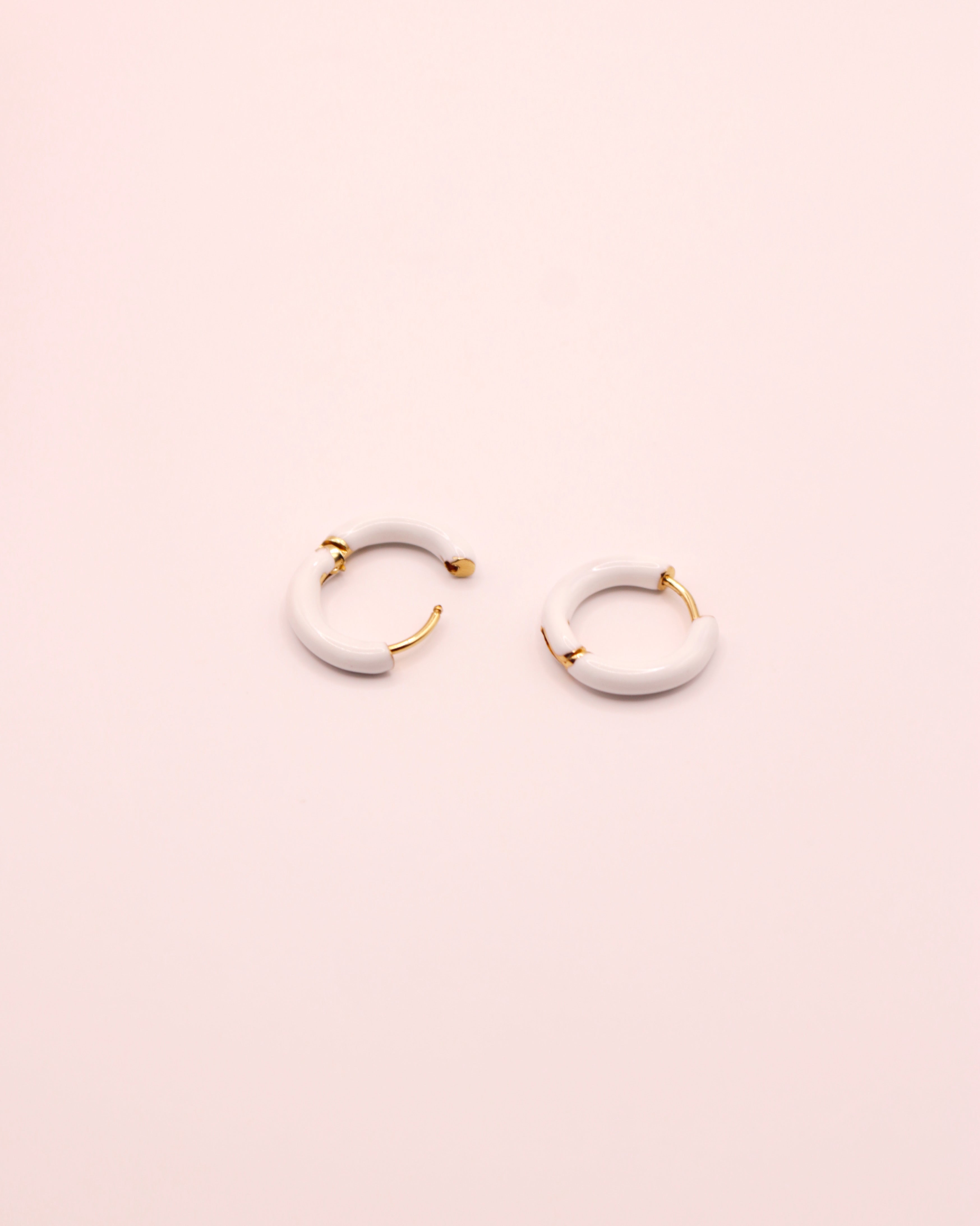 These white hoop earrings are made from medical grade stainless steel and pvd 18K gold plated for guaranteed irritation resistance. They are perfect for girls and women alike. Upgrade your accessory game with these stylish and functional earrings, perfect for all-day wear.