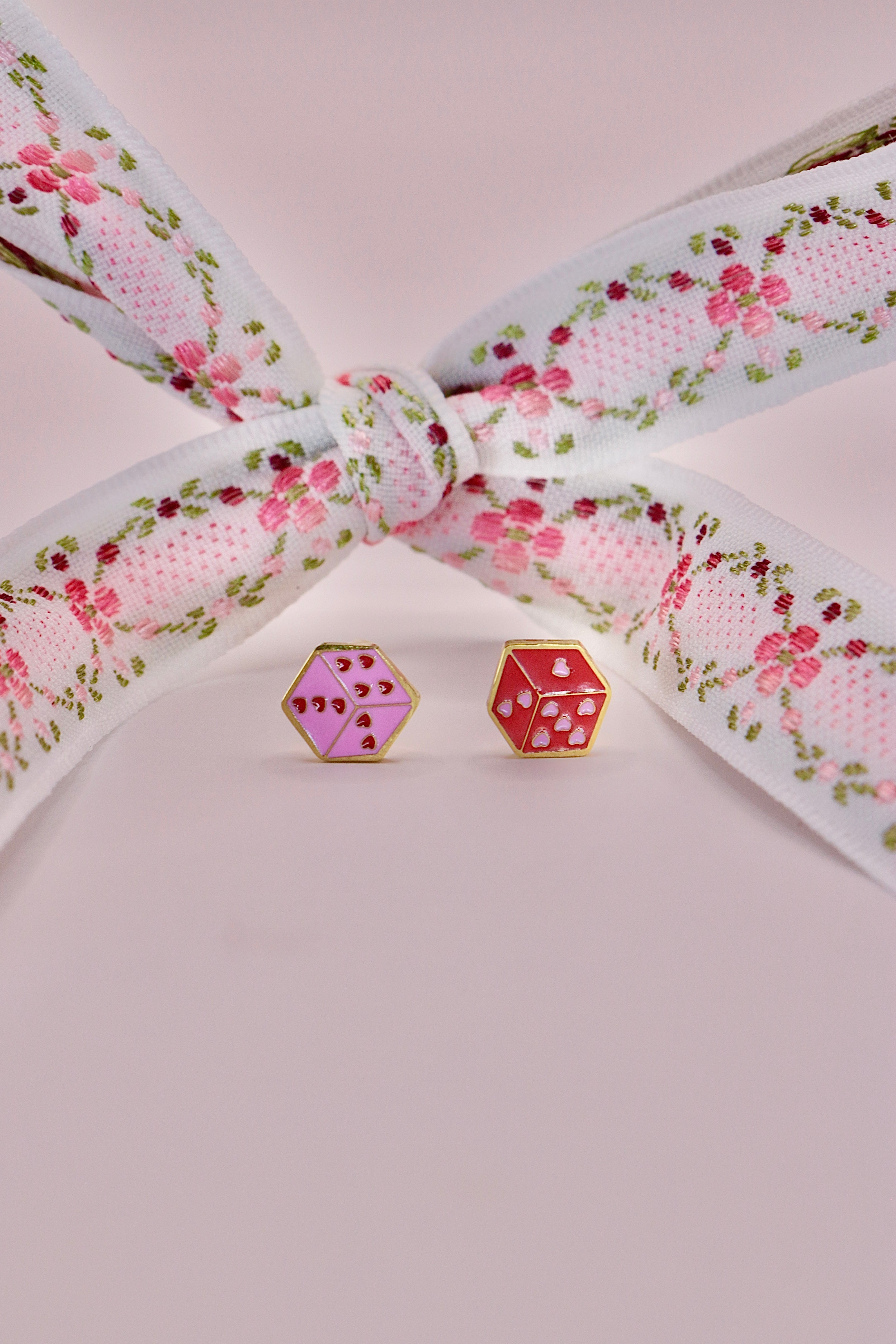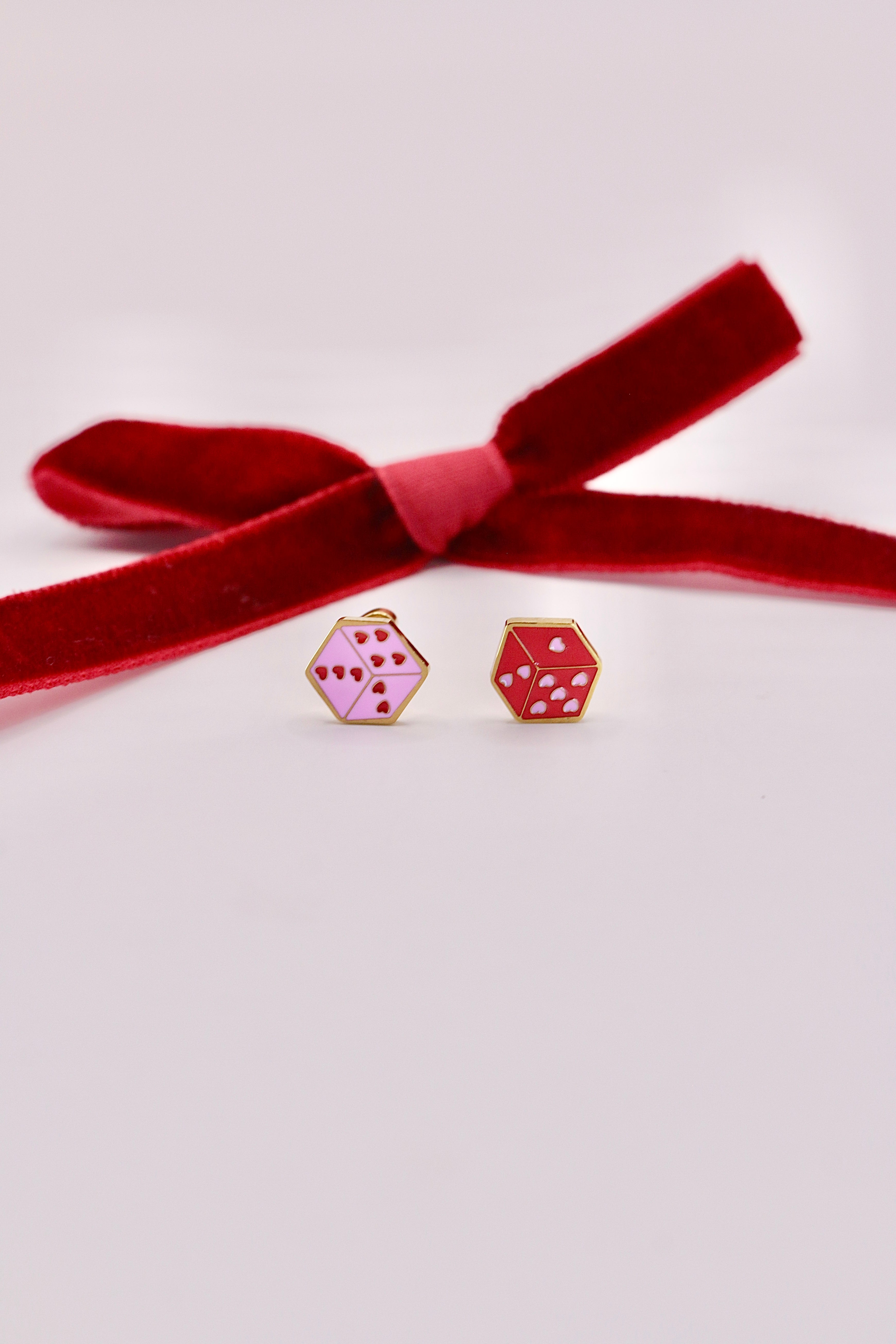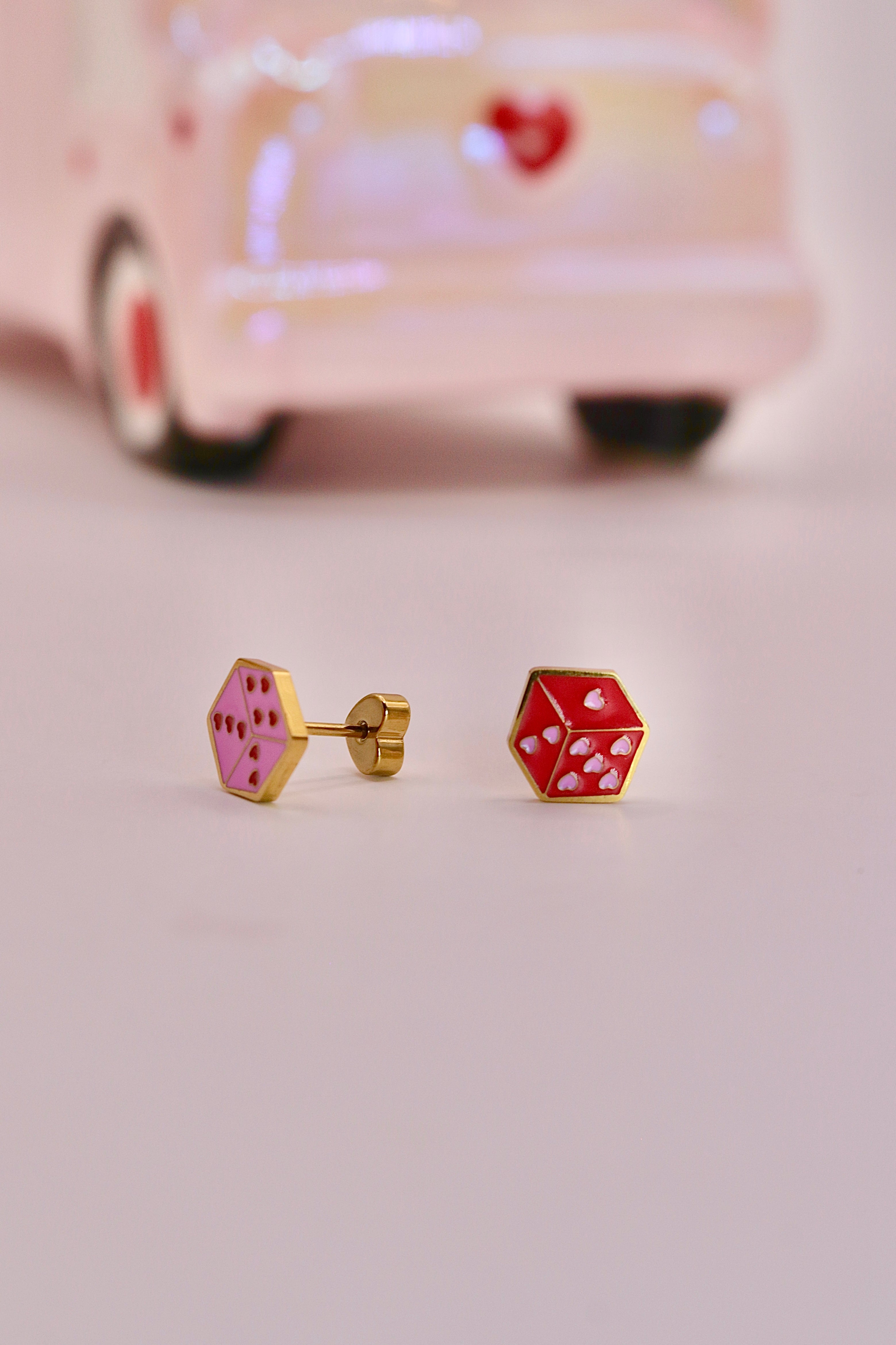 These cute heart dice earrings are 18k gold plating and made from hypoallergenic materials, making them suitable for even the most sensitive ears. As part of our Love collection these cute and dainty earrings are complemented by a flat back closure customized as a heart, ensuring a comfortable and secure fit. Add this cute custom design to your stack now.