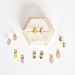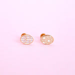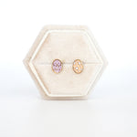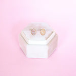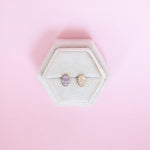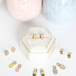 These cute mis-matched Easter Egg earrings are 18k gold plating and made from hypoallergenic materials, making them suitable for even the most sensitive ears. As part of our Easter collection these cute and dainty earrings are complemented by a flat back closure ensuring a comfortable and secure fit. One earring includes a cute pink and white stripe design adorned with a cute bow. The other egg features a soft peachy pink with cute flowers and polka dots. Add this cute custom design to your stack now.