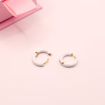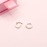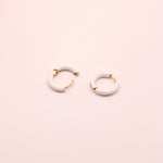 These white hoop earrings are made from medical grade stainless steel and pvd 18K gold plated for guaranteed irritation resistance. They are perfect for girls and women alike. Upgrade your accessory game with these stylish and functional earrings, perfect for all-day wear.